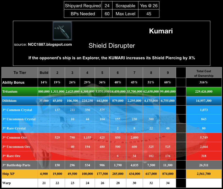 The Kumari is an Andorian battle cruiser class named after the legendary Andorian Imperial Guard ship that assisted Earth’s mission to unravel the mystery of the Xindi in 2153. The Andorians built so many of these ships in anticipation of all-out war with the Vulcans that many of the older models can be found in large numbers to this day. |